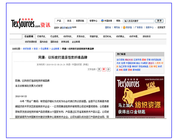 紡織資源資訊網、服飾飾品網——同康:以科技打造活性碳纖維品牌
