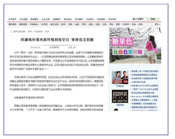 南方紡織網、白馬服裝網——同康:以科技打造活性碳纖維品牌