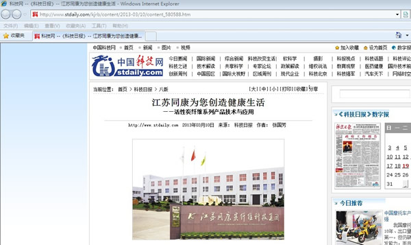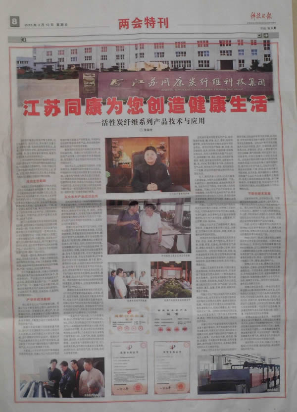 3月10日,中國(guó)科技日?qǐng)?bào)記者到同康公司采訪,并在科技日?qǐng)?bào)的兩會(huì)特刊發(fā)表。